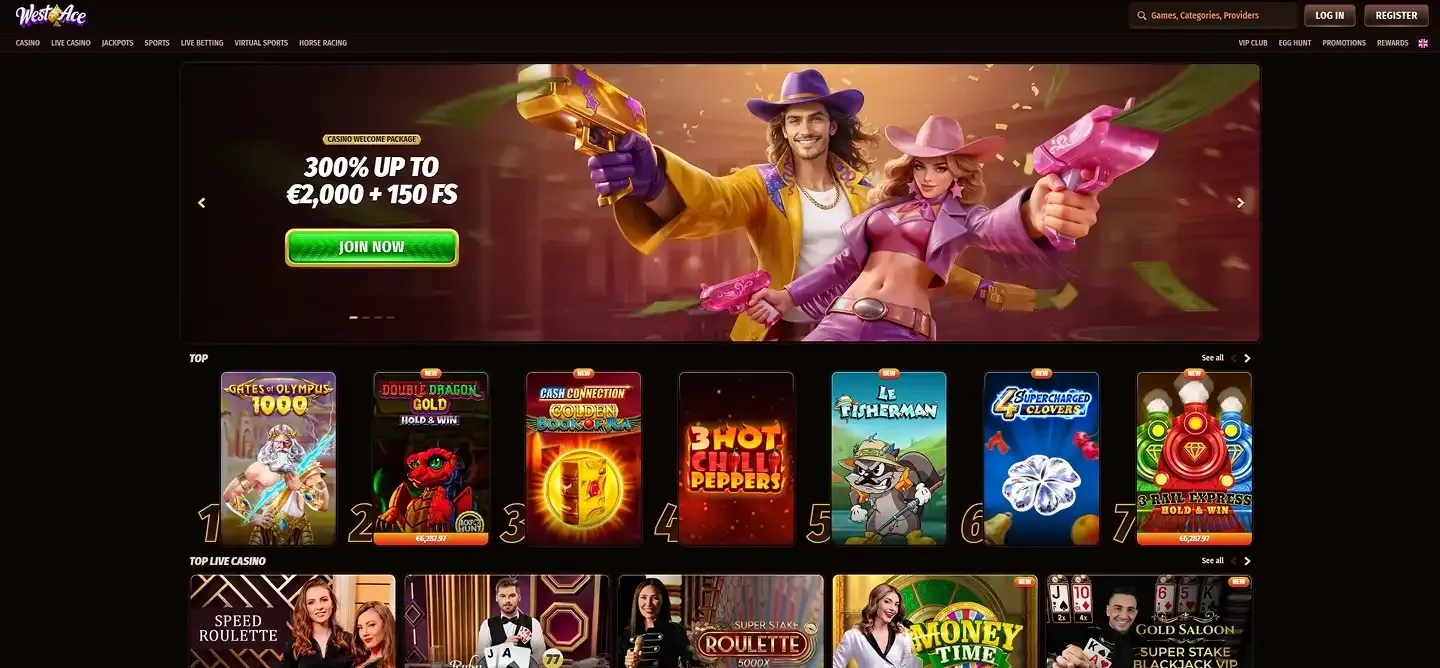 Bij Westace Online Casino vindt u een uitgebreid aanbod aan slots en online casino games van toonaangevende providers. Het assortiment omvat honderden videoslots, klassieke tafelspellen zoals roulette en blackjack, live dealer games en progressieve jackpot slots. Er wordt regelmatig nieuw content toegevoegd om het aanbod vers en spannend te houden.